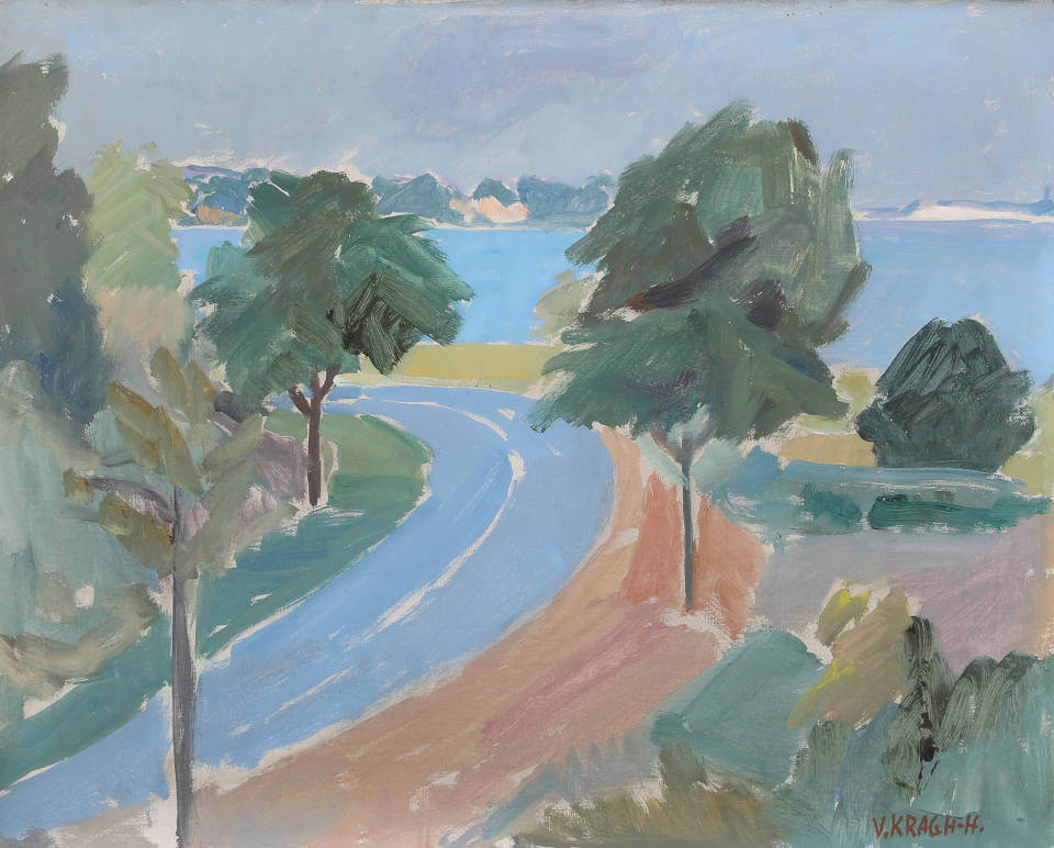Viggo Kragh-Hansen war ein dänischer Maler und Grafiker. Er studierte an der Kunstakademie in Kopenhagen, wo er eine klassische Ausbildung in Malerei erhielt. Früh entwickelte er eine eigenständige Bildsprache mit subtiler Farbgebung und einer besonderen Sensibilität für Licht und Raum. Sein Werk bewegt sich zwischen Realismus und Impressionismus – meistens in Form von Landschaften, Interieurs und Porträts, die eine stille, fast meditative Stimmung ausstrahlen. Sein Werk wird heute für seine meisterhafte Beherrschung von Licht und Atmosphäre geschätzt. Kragh-Hansens Arbeiten sind heute in mehreren namhaften dänischen Museen vertreten, darunter Statens Museum for Kunst, ARoS Kunstmuseum, das Skagen Museum sowie in zahlreichen privaten Sammlungen in Dänemark.
