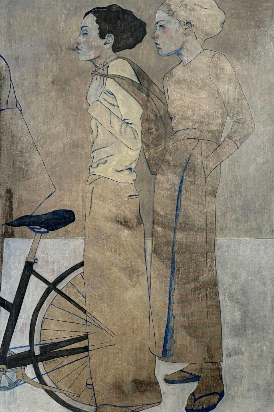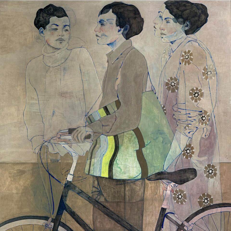 André Lundquists Malerei ist ein vielschichtiger Prozess: Öl, Tusche, Kohle, Kreide und Tapete werden in mehreren Schichten aufgetragen, überarbeitet, wieder freigelegt – ein komplxes Werk, das Erinnerungen, Emotionen und innere Bilder konserviert. Er beschreibt seine Bilder als „Palimpseste“, in denen sich Erinnerungen, Träume, Erfahrungen und Emotionen überlagern. Seine Malerei ist zurückhalten, warm, ruhig und oft von weiblichen Figuren dominiert, die in intimen, aber nie voyeuristischen Szenen dargestellt werden. Seine Werke zeigen kontemplative, stille Momente. Dabei geht es nie um das bloße Abbild, sondern um das Unsichtbare hinter dem Sichtbaren – um Nähe, Verletzlichkeit, Sehnsucht und Identität.